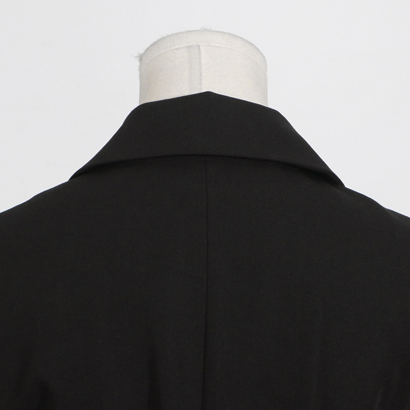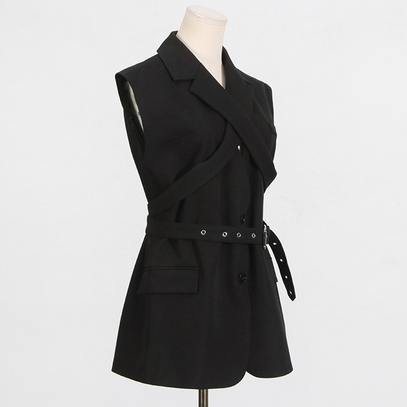 Black Blazer for Women - Simple Spring Autumn Sleeveless Belt Collared Design