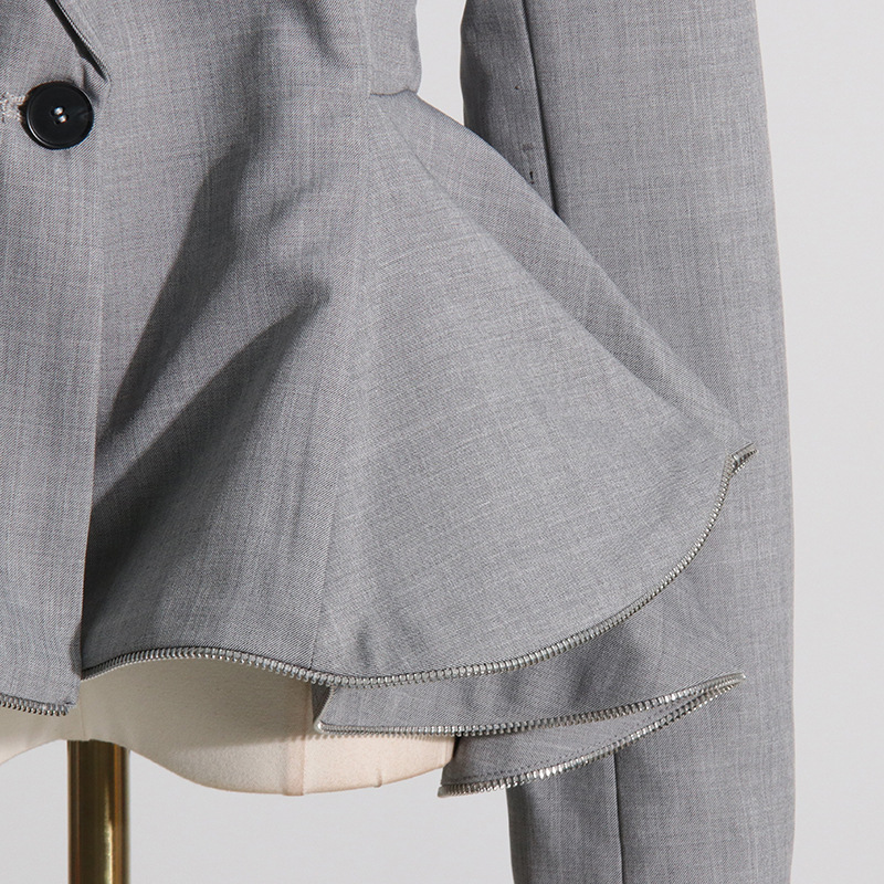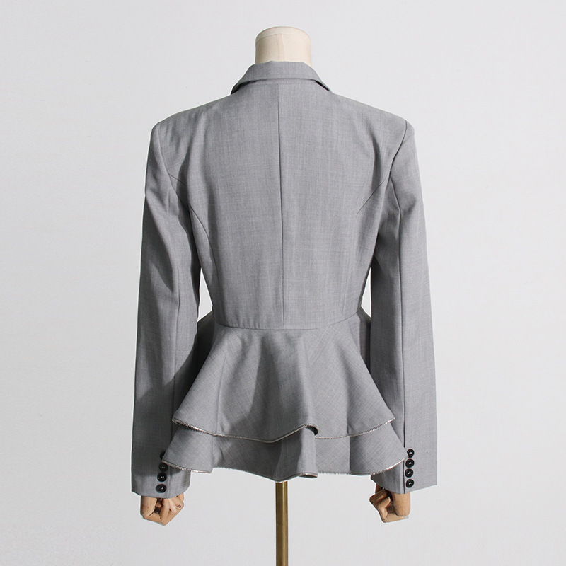 Elegant Double Breasted Ruffled Waist Short Blazer