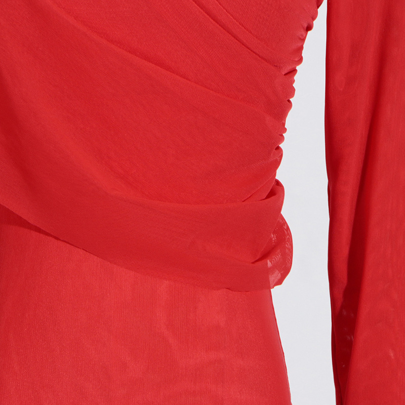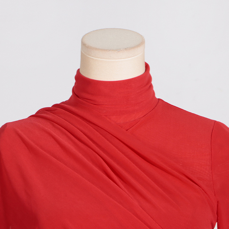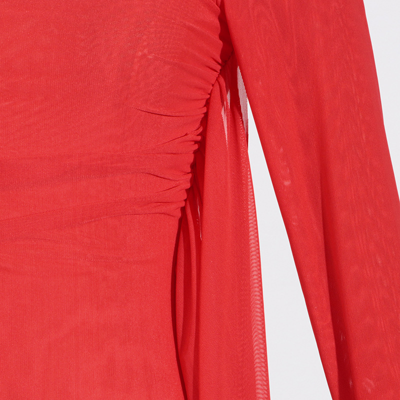 Deep Elegant T-Shirt for Women - Autumn Stand Collar Long Sleeve Mesh Slim Top