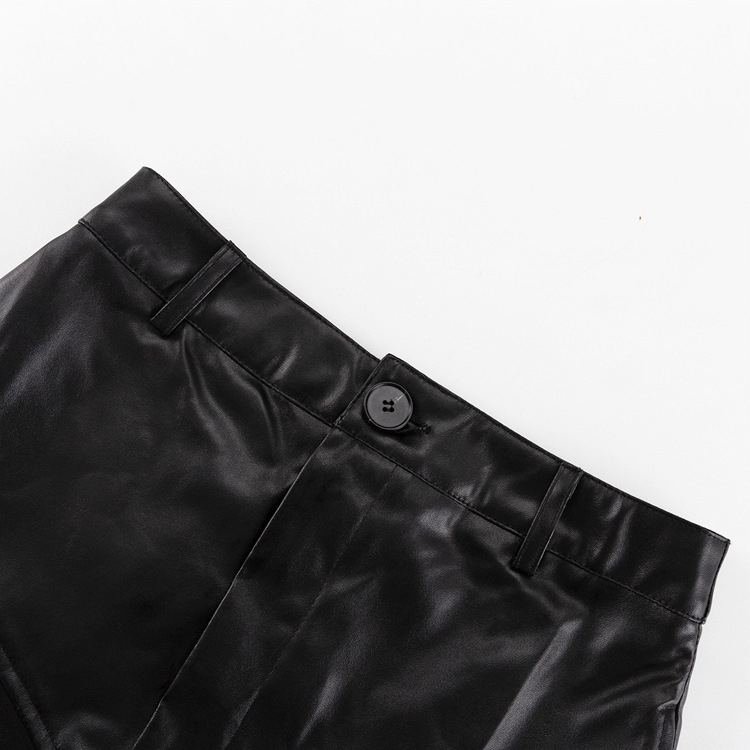 Women Clothing Retro Faux Leather Stitching Design Half Length Skirt Women Wild High Waist Slit Hip Skirt