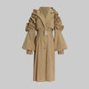 Earthtone Design Two Piece Coat Spring Cloak Stitching Faux Leather Handsome Waist Tight Jacket Top Women