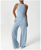 Women Two Piece Set Brown Long Sleeve Short Cropped Top Wide Leg Casual Pants Comfortable
