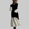 Black Short Sleeve Stitching Denim Simple Elegant Slim Slimming Long Knitted Dress Women