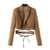 Neutral Women Clothing Yarn Stitching Satin Double Breasted Short Blazers