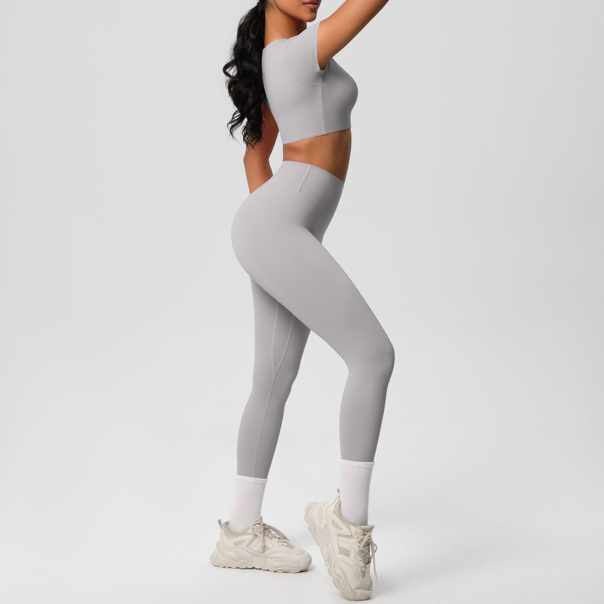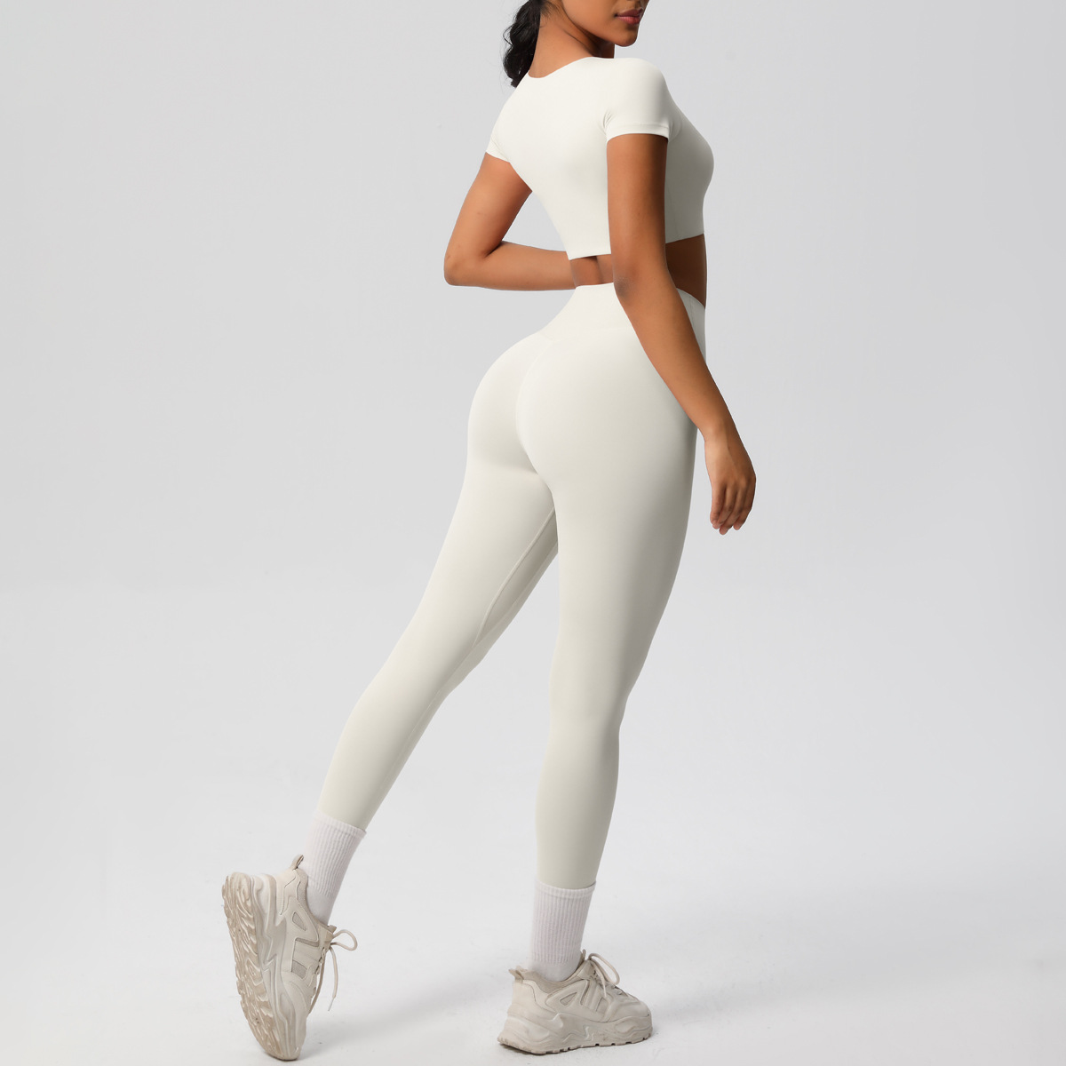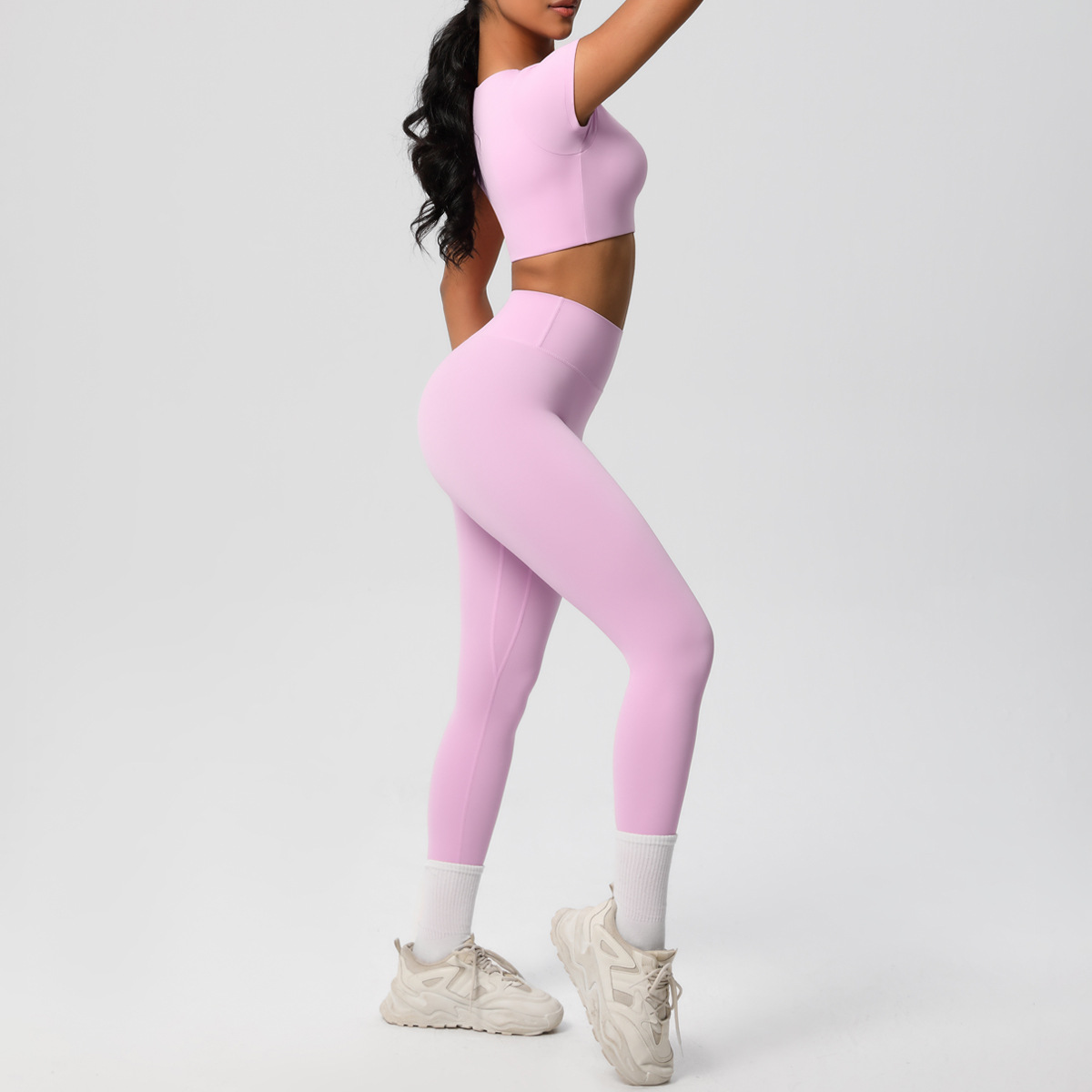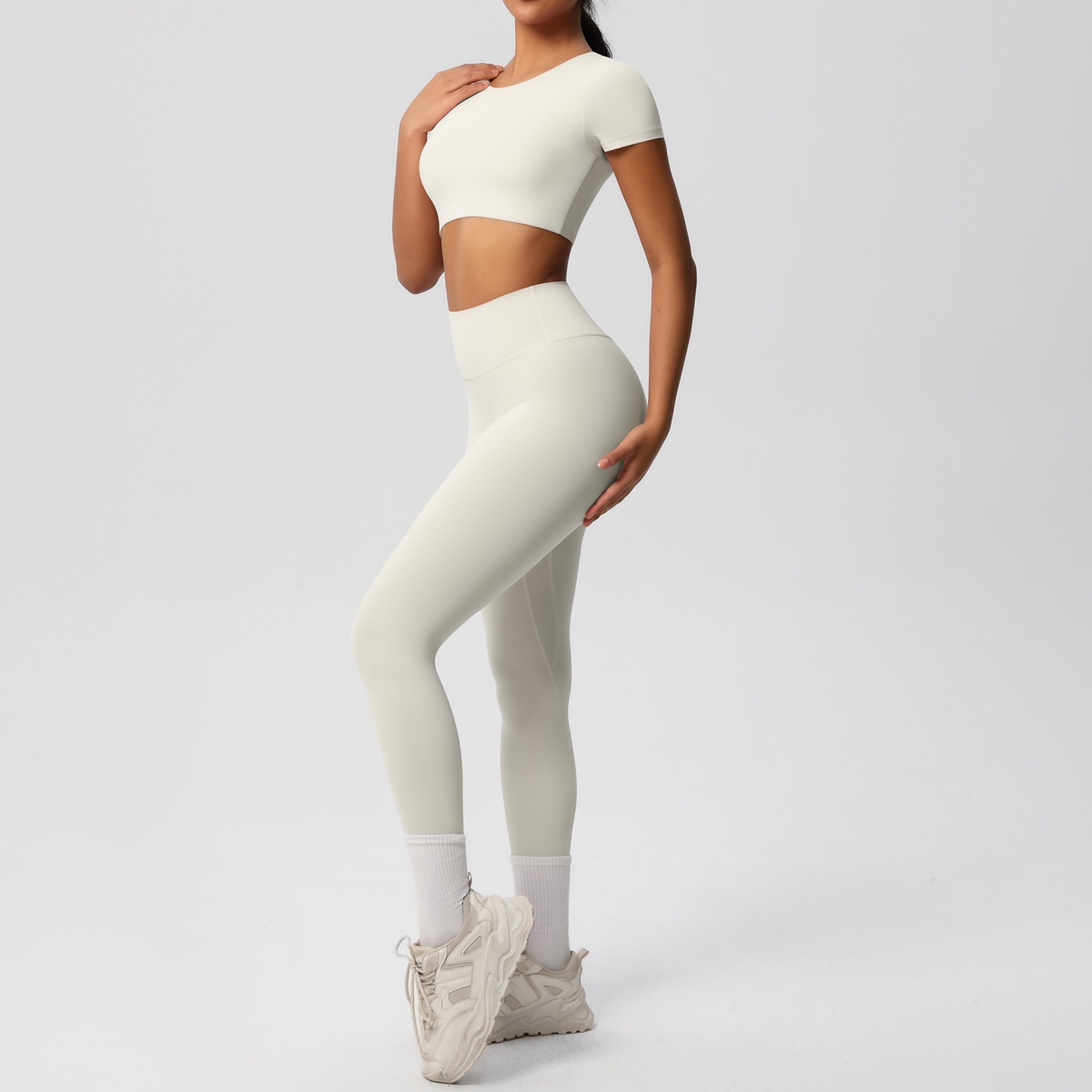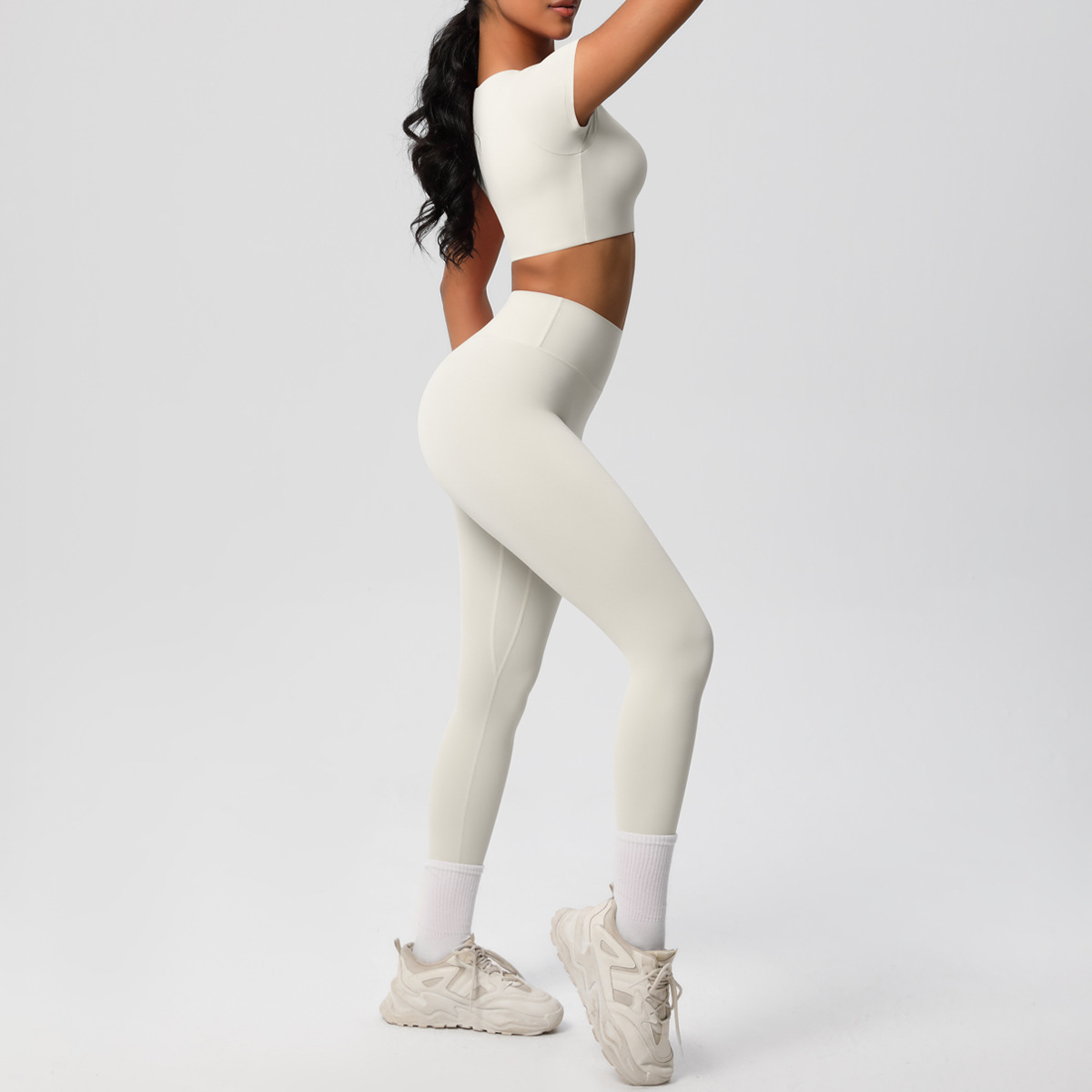 Nude Feel Hip Raise Yoga Set – High Waist Fitness Pants & Bra Top