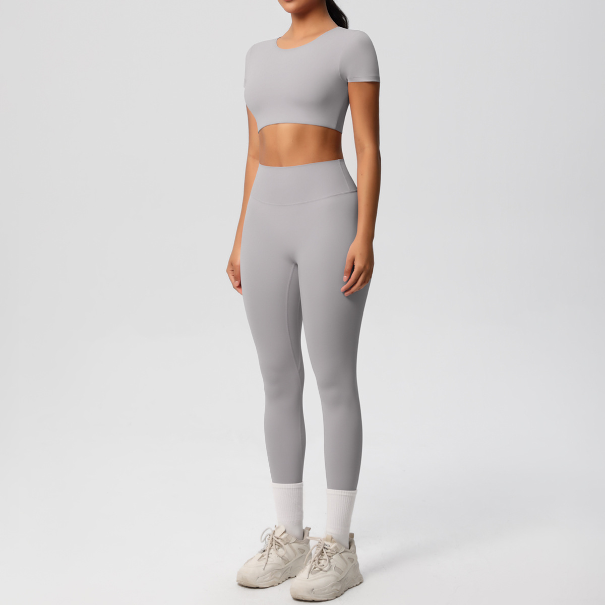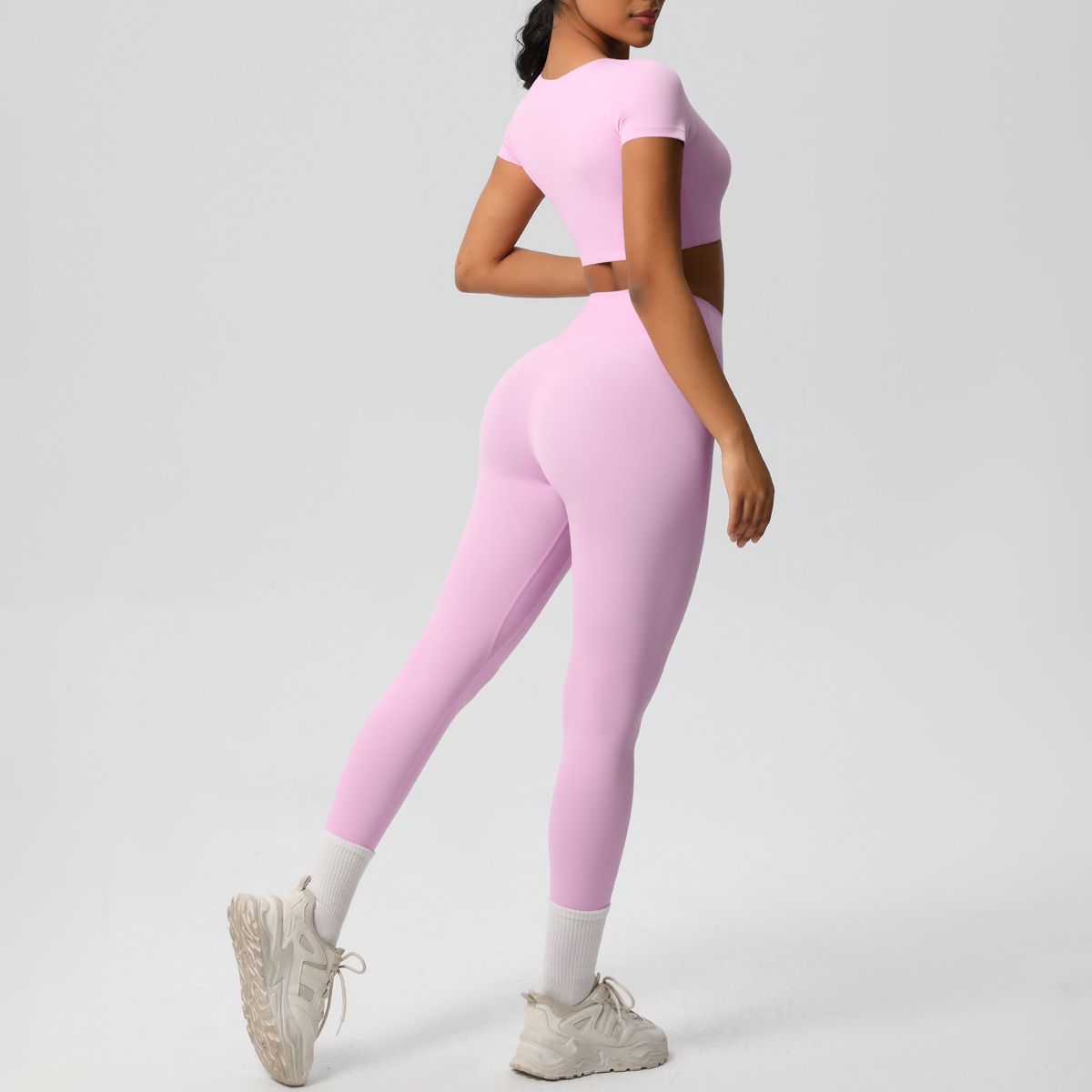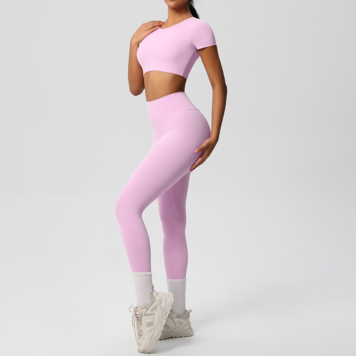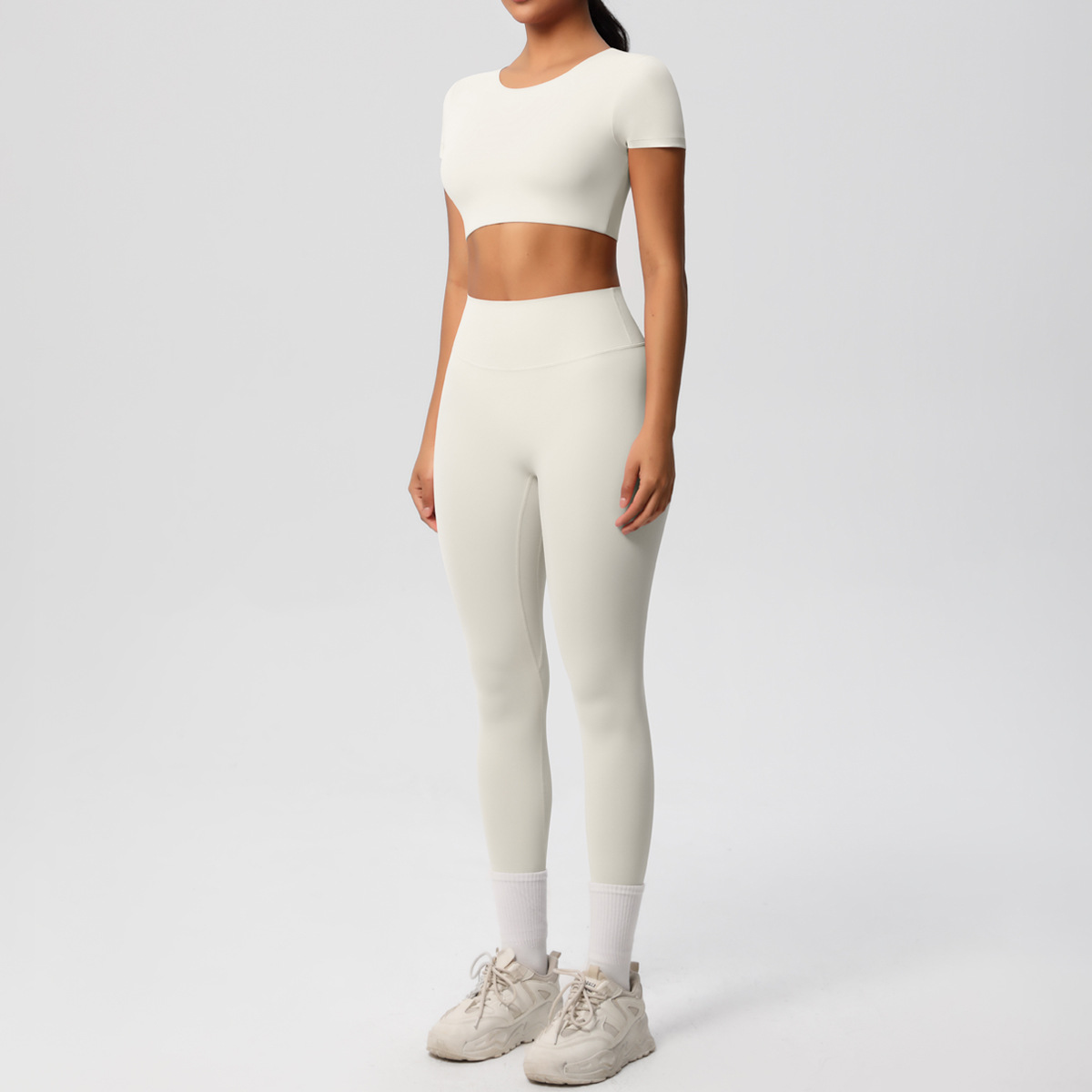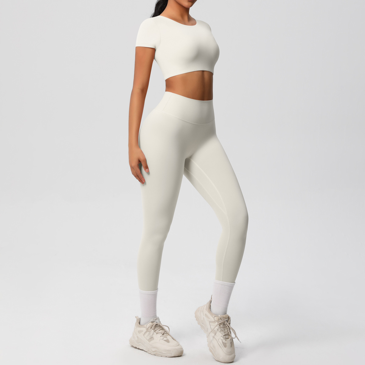 Nude Feel Hip Raise Yoga Set – High Waist Fitness Pants & Bra Top