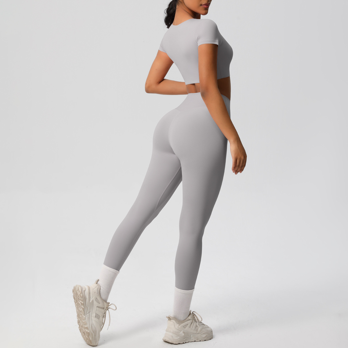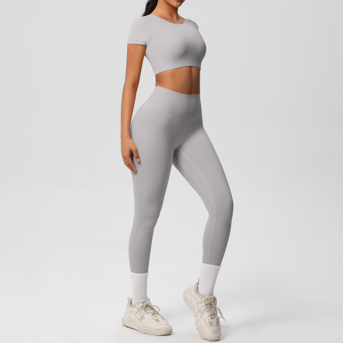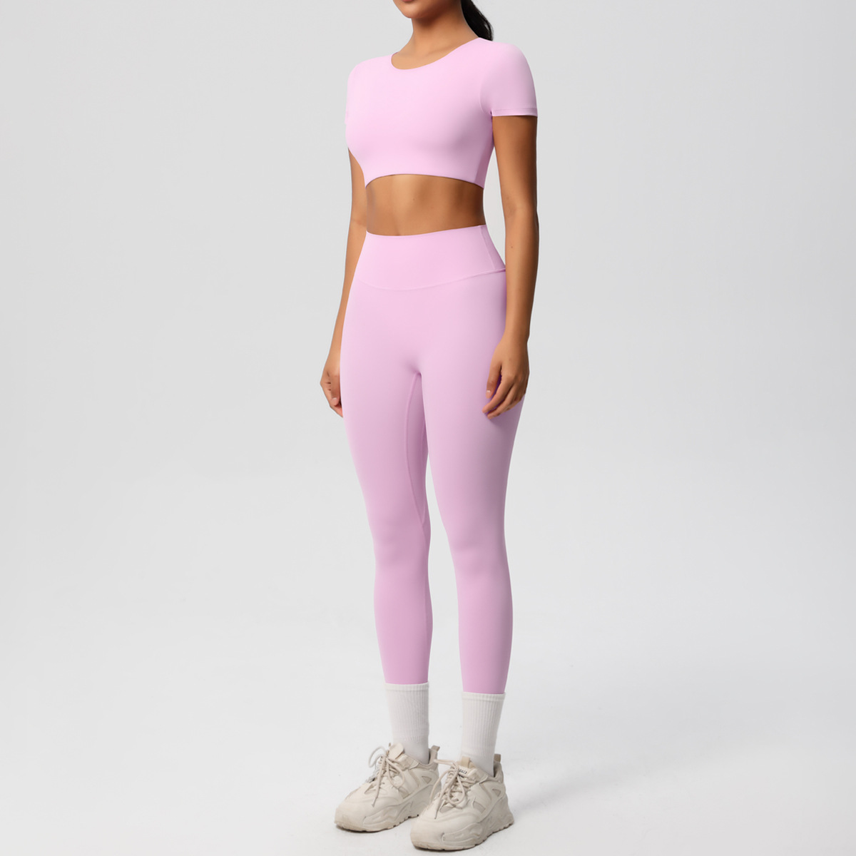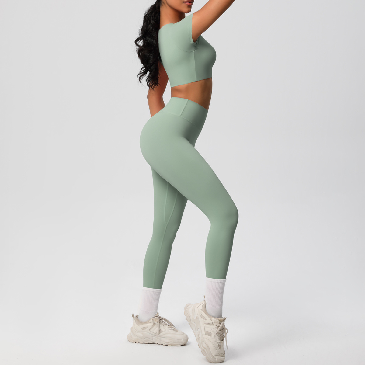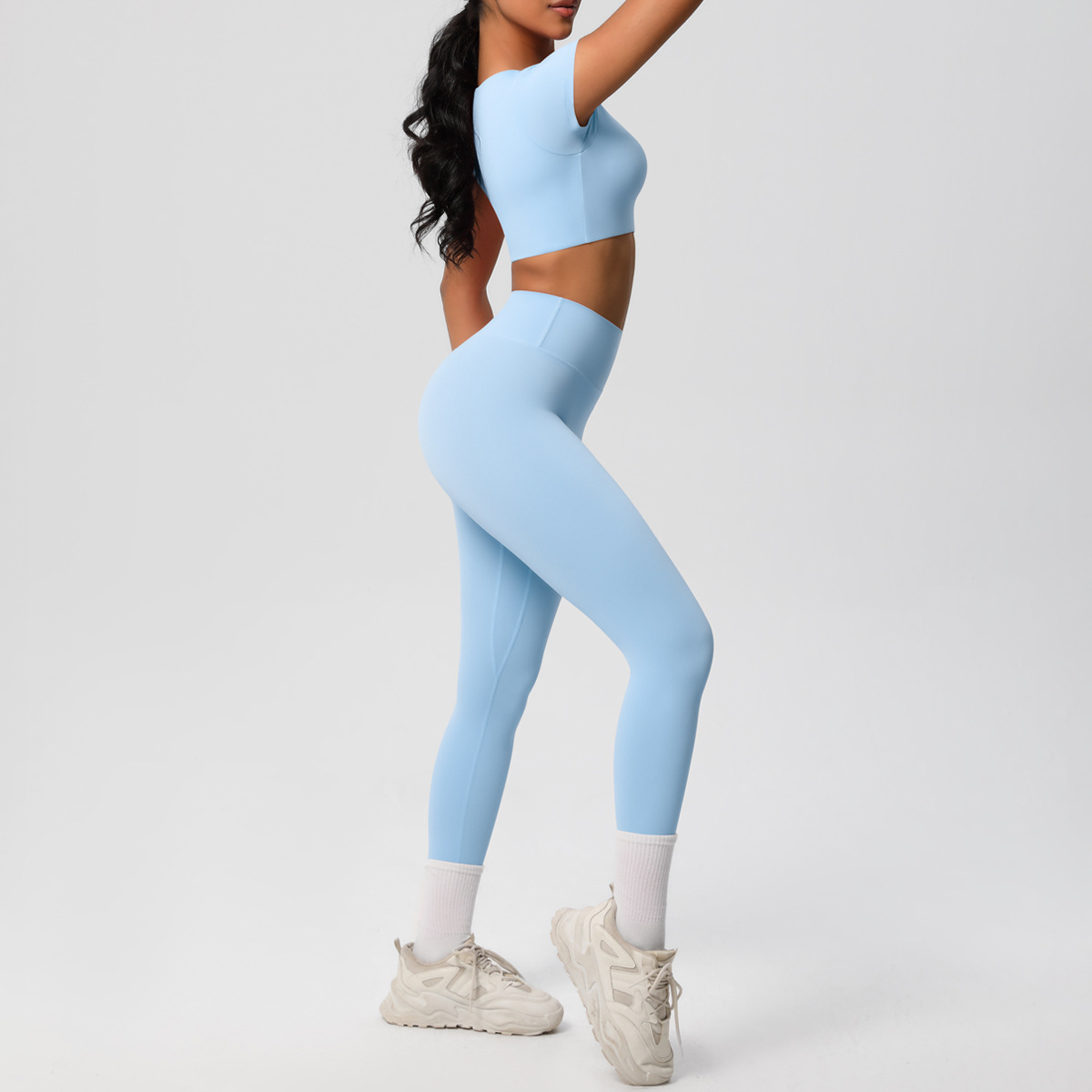 Nude Feel Hip Raise Yoga Set – High Waist Fitness Pants & Bra Top