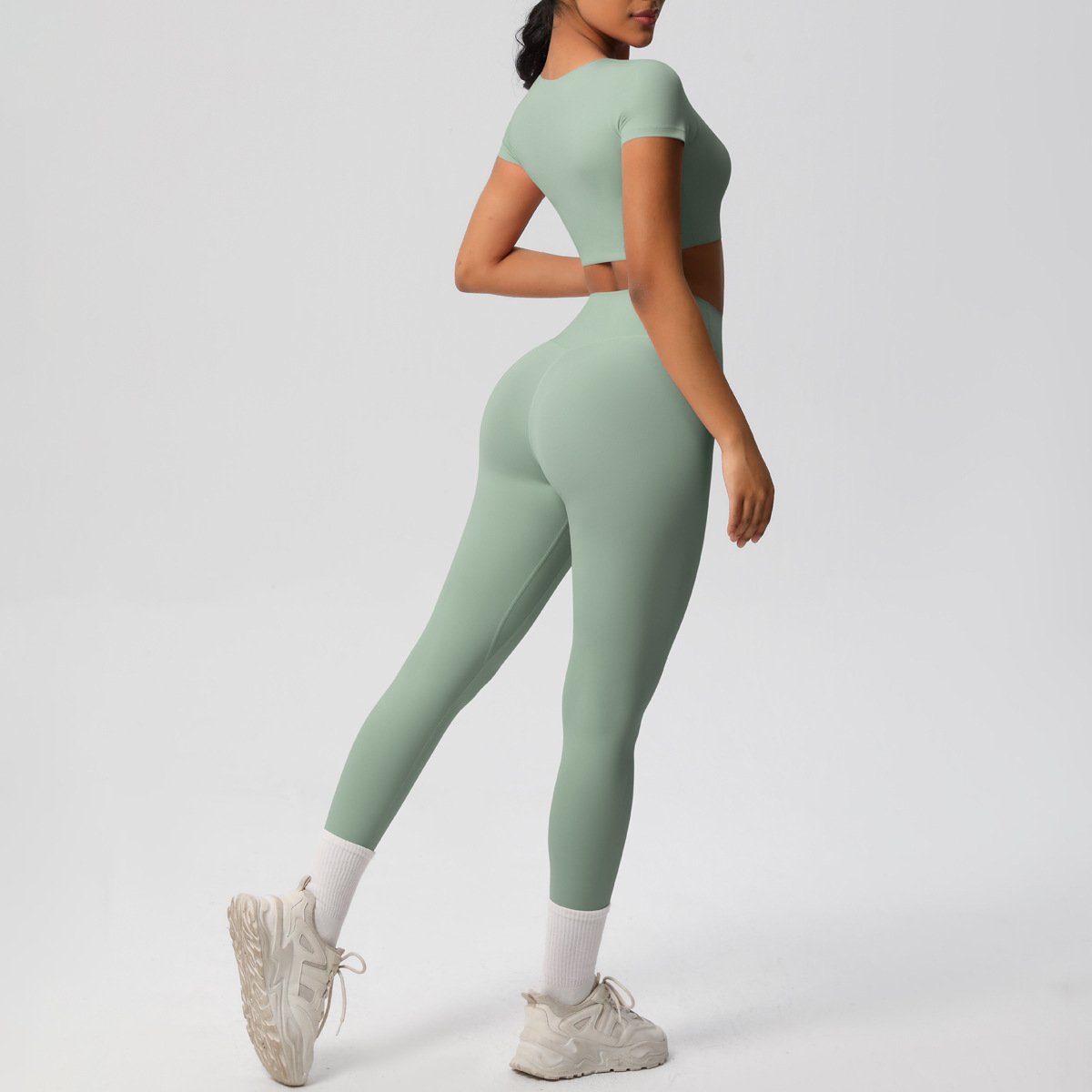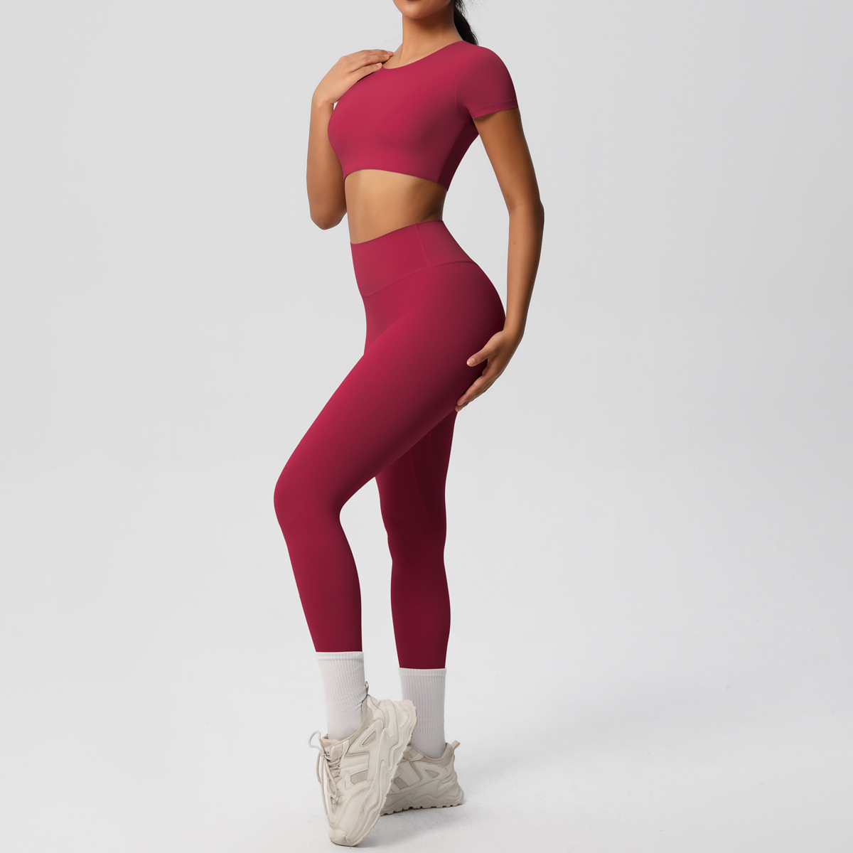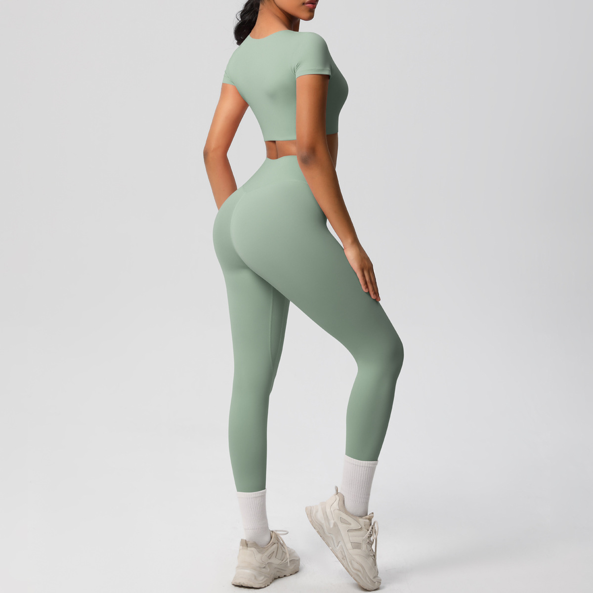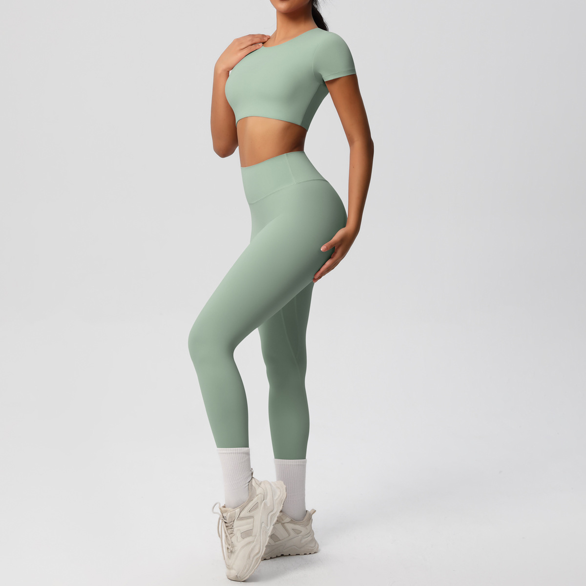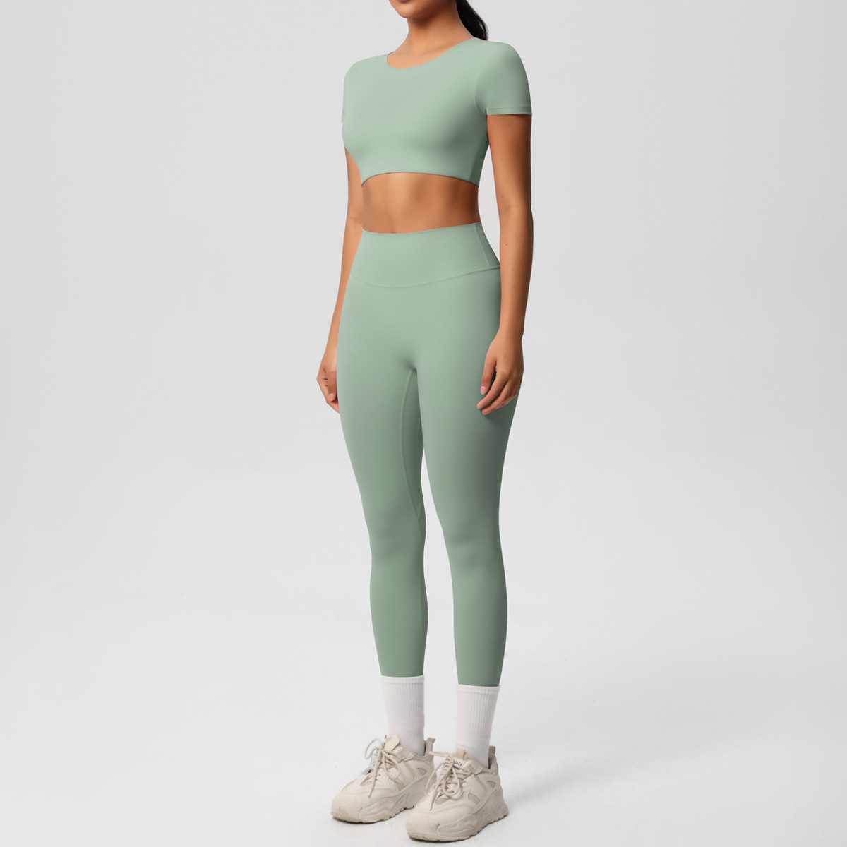 Nude Feel Hip Raise Yoga Set – High Waist Fitness Pants & Bra Top