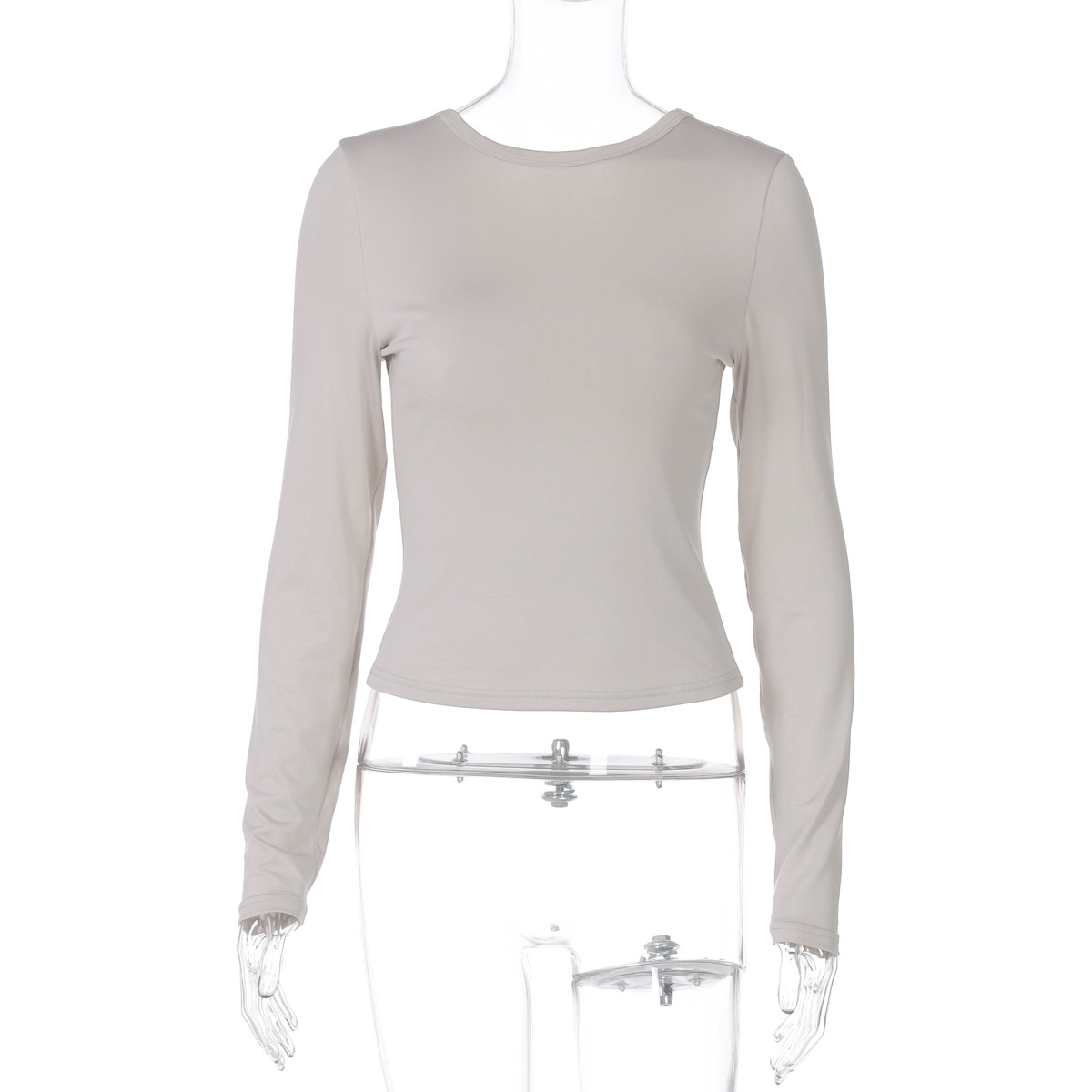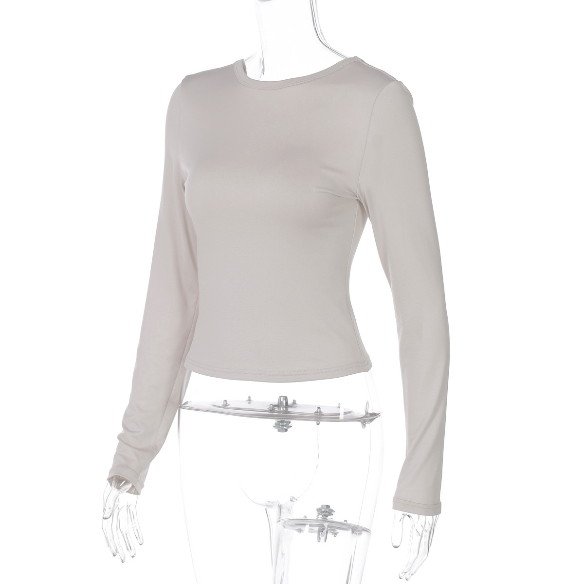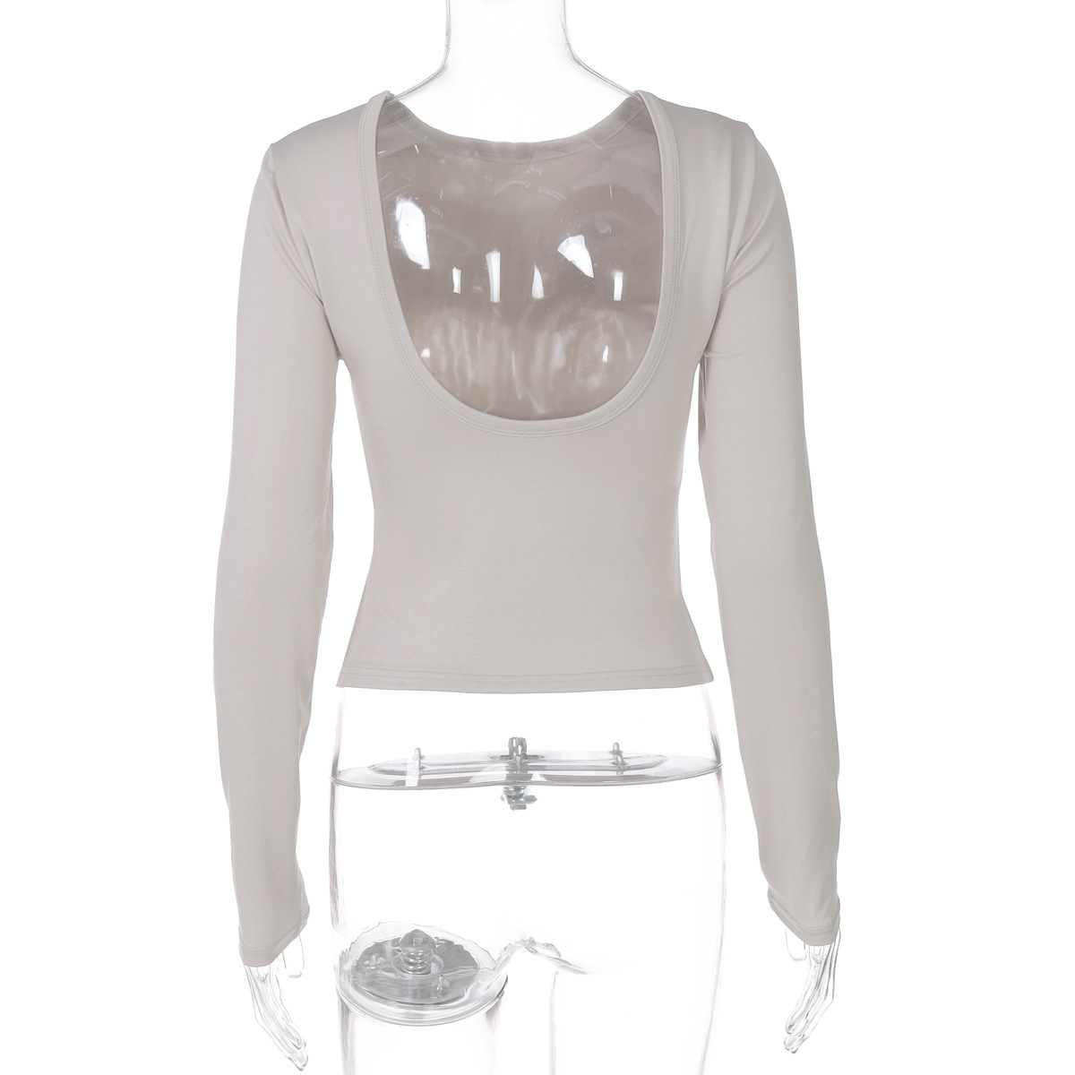 Women’s Slim Fit Long Sleeve Backless Solid Color Top