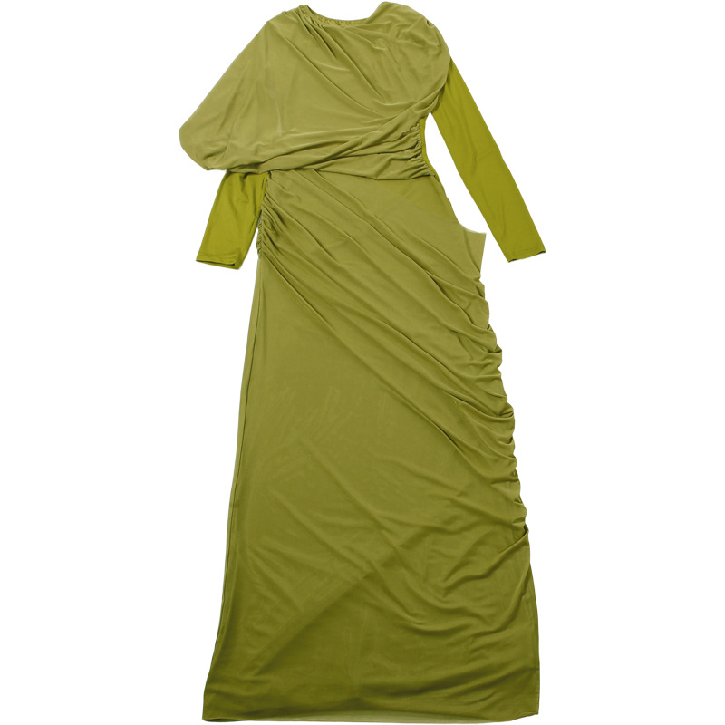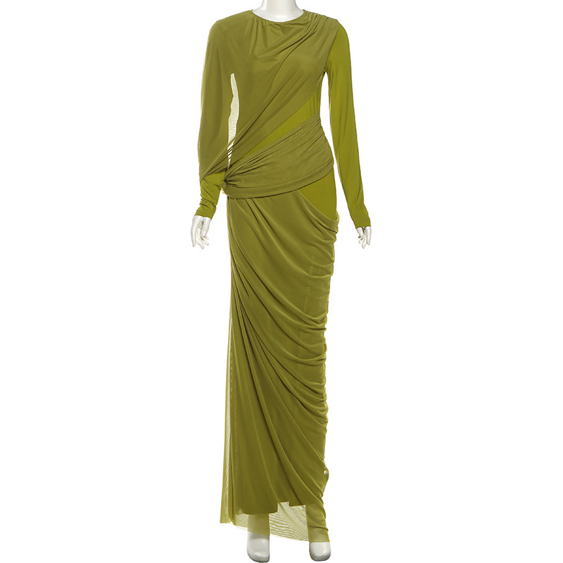 Women’s Autumn Winter Slim Fit Asymmetric Pleated Maxi Dress