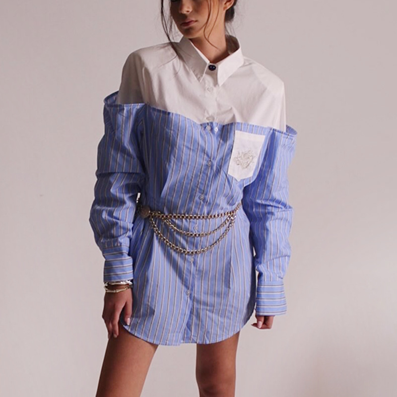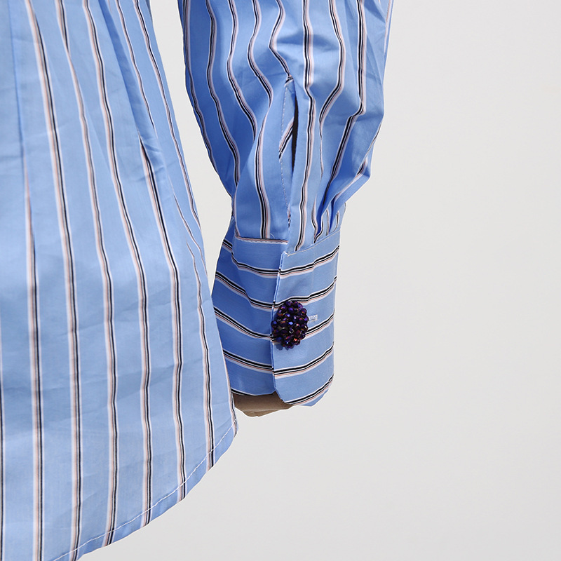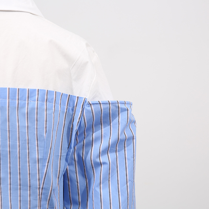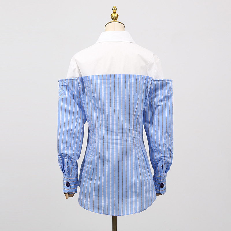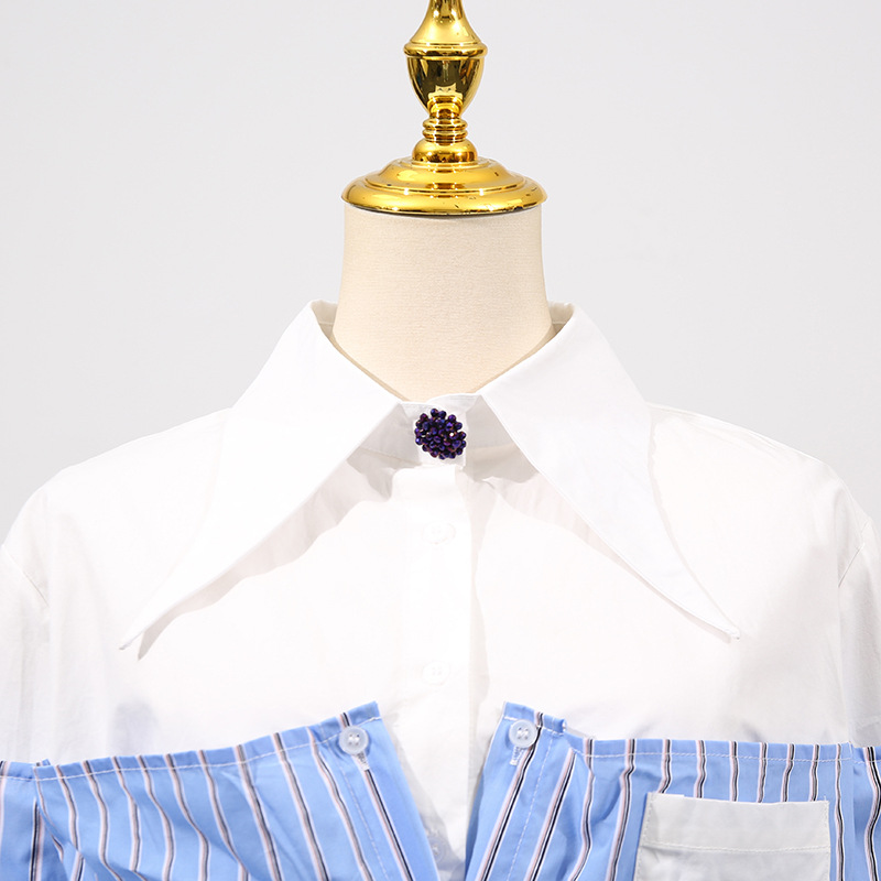 Blue Simple Office Top Women Summer Comfort Faux Two Pieces Casual Striped High Grade Women Shirt