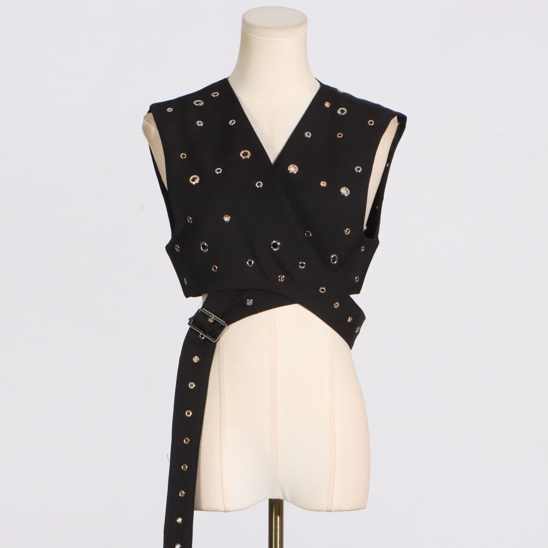Fashionable Trendy Sleeveless Riveted Belted Tank Top