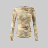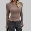 Light Bell Sleeve Ruched Fitted T-Shirt with Mock Neck – Feminine & Chic