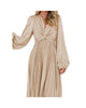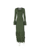 Earthtone Round Neck Patchwork Ruched Long Sleeve Maxi Dress