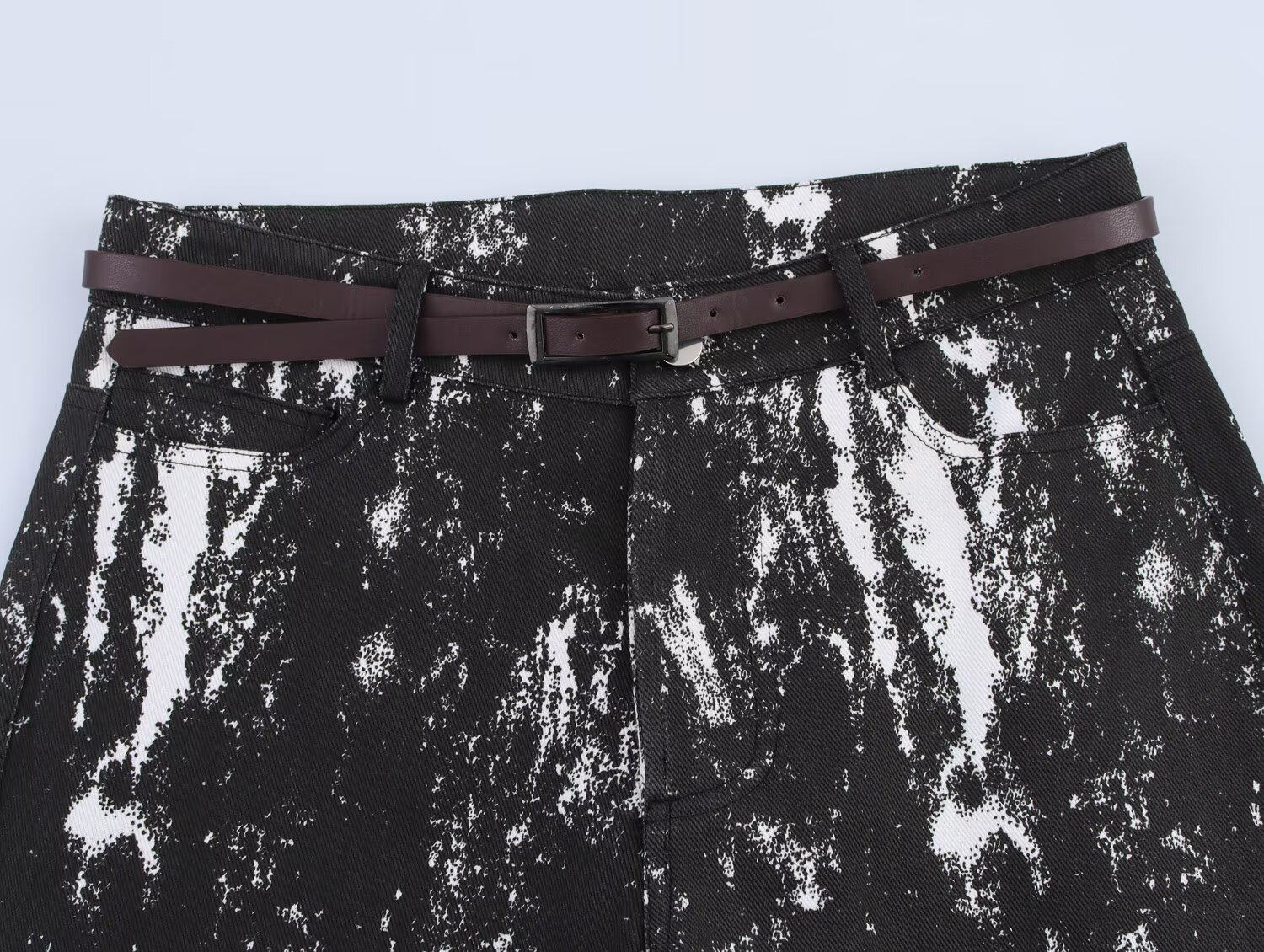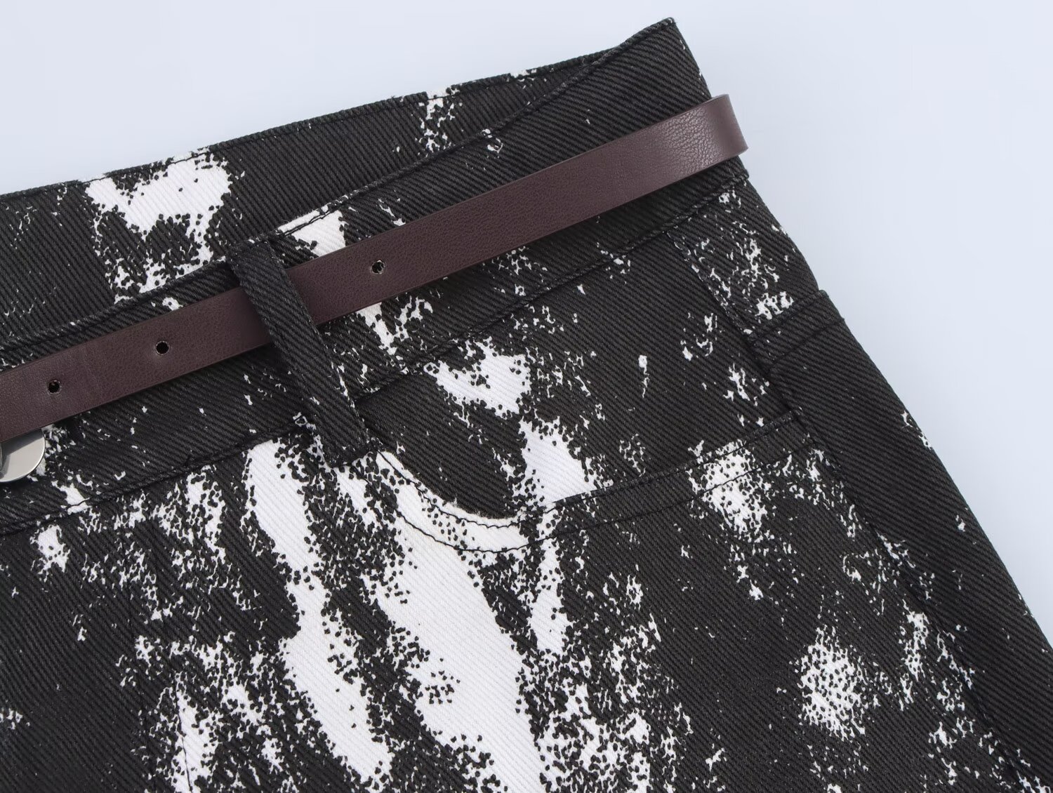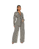 Black Women Clothing Women Animal Print Flocking Jacket Coat with Belt Pant Set