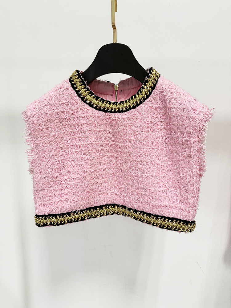 Pastel Autumn Winter Star Heavy Industry Chain Decoration Ultra Short Sleeveless Vest Top - Modestly Vogue