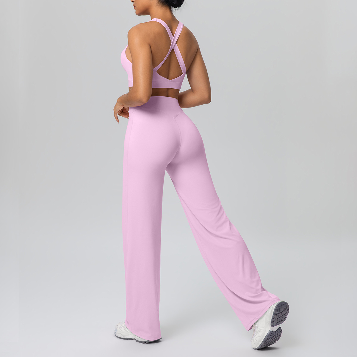 Pink Studio Sculpt Cross Strap Bra & Yoga Pants Set