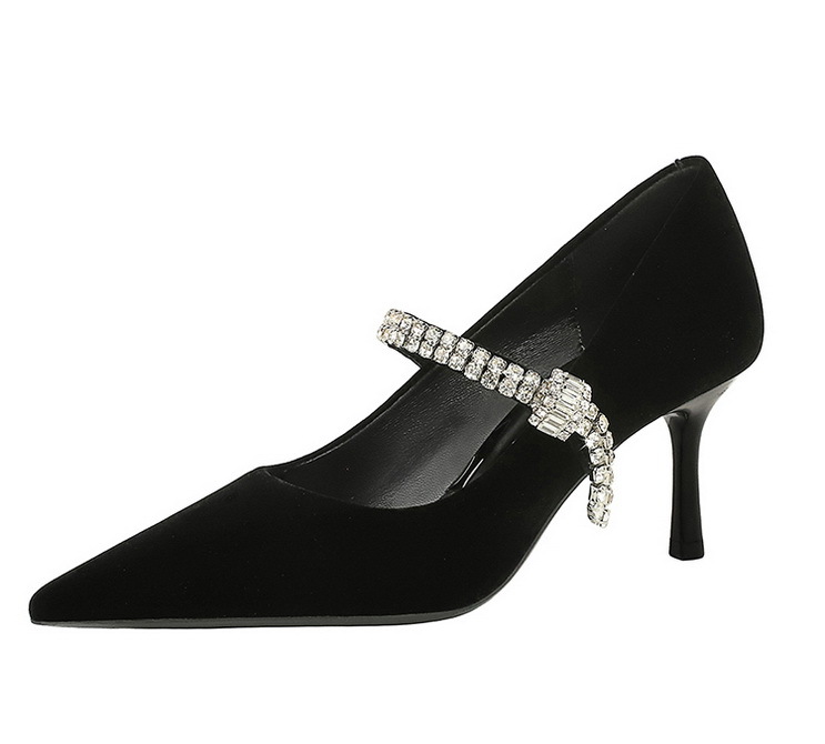 Rhinestone Strap Pointed Toe Suede Stiletto High Heels for Women