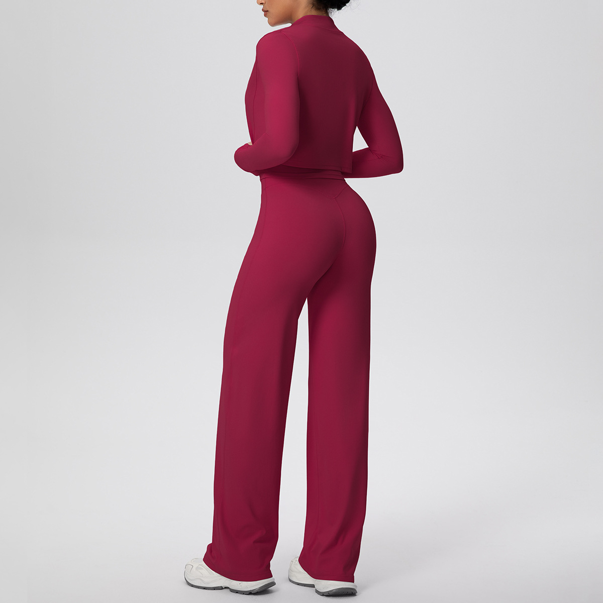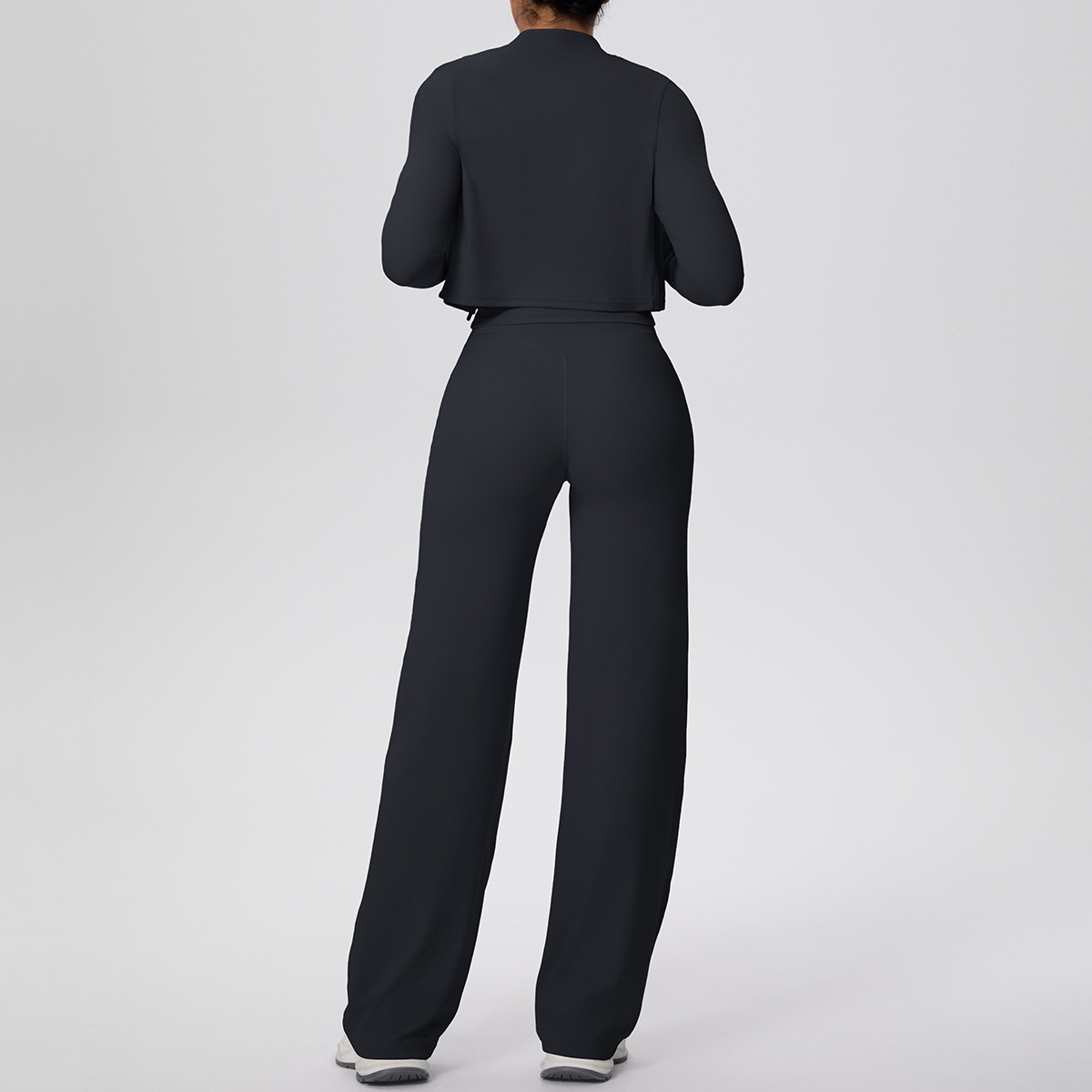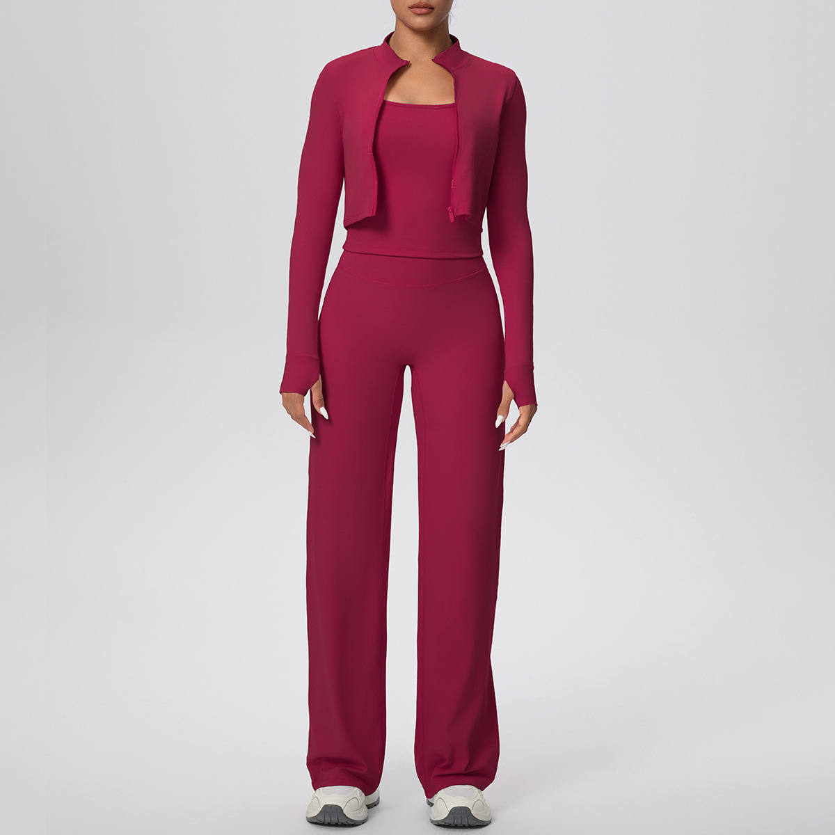 Solid Color Zip Long Sleeve Coat & Yoga Three-Piece Suit