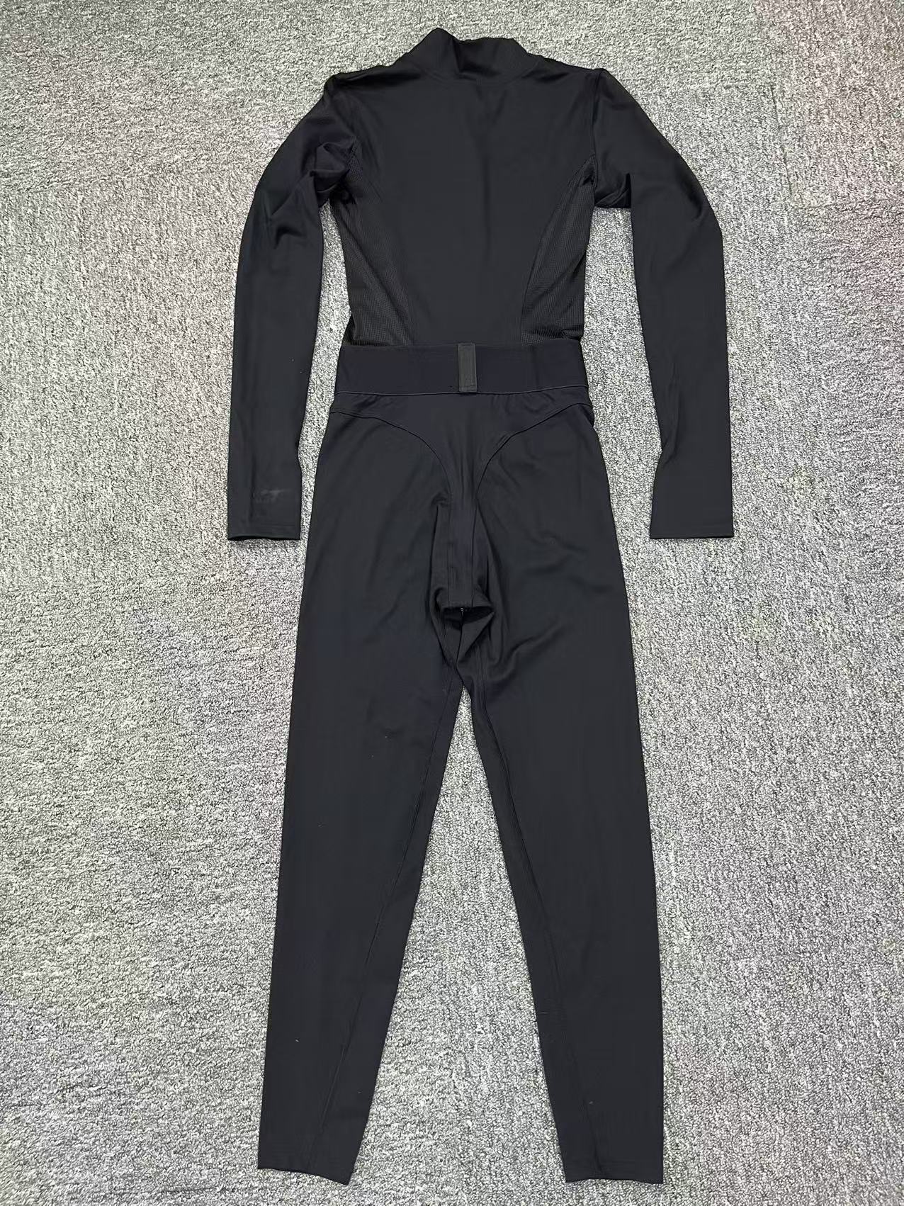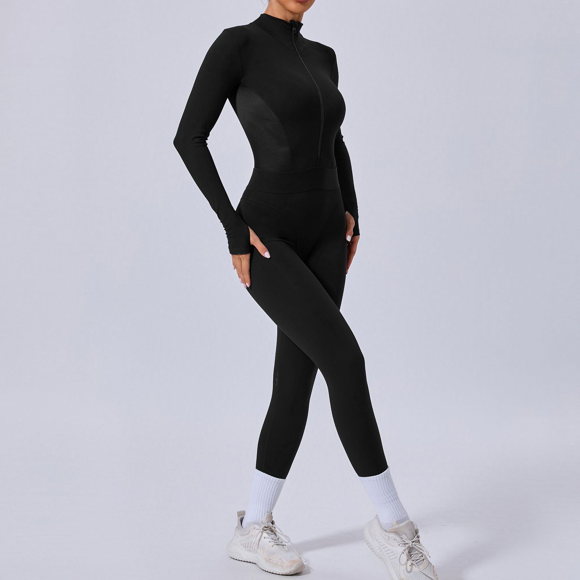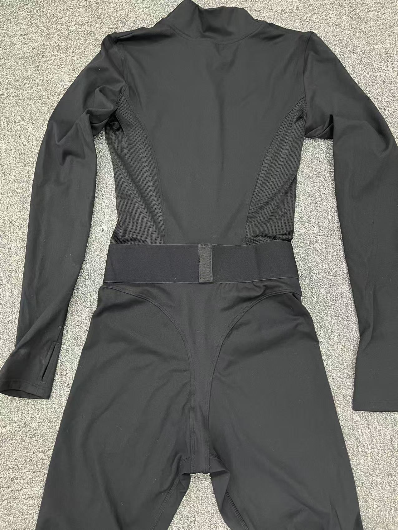 Mesh Stitching on Both Sides Yoga Jumpsuit Tight Elastic Waist Finger Hole Stitching Sports Fitness One Piece