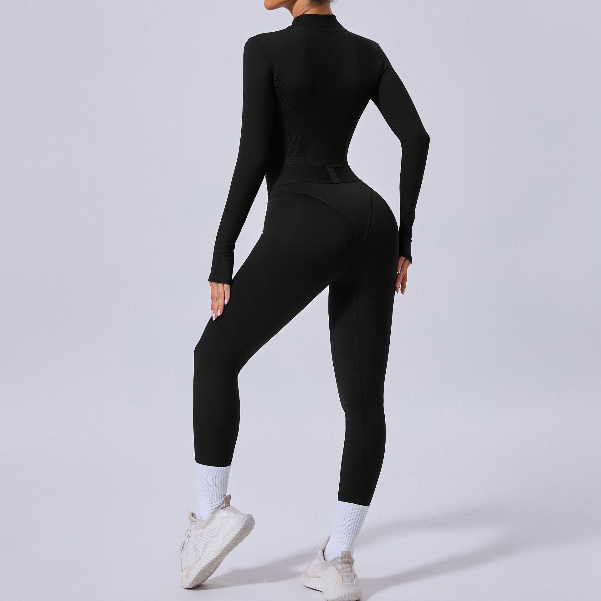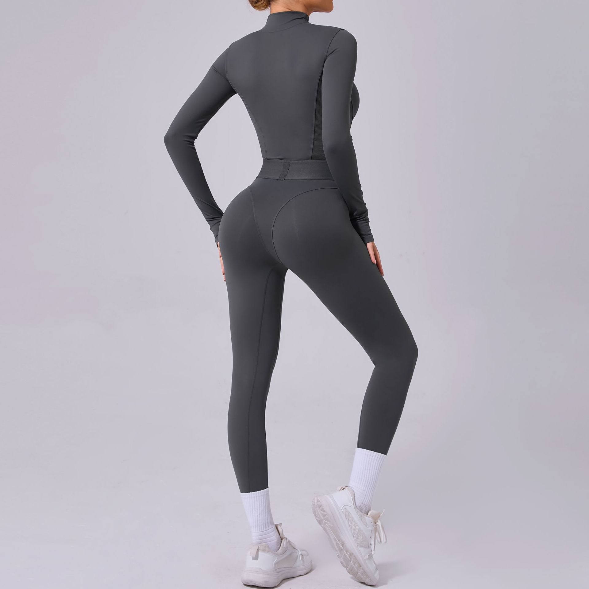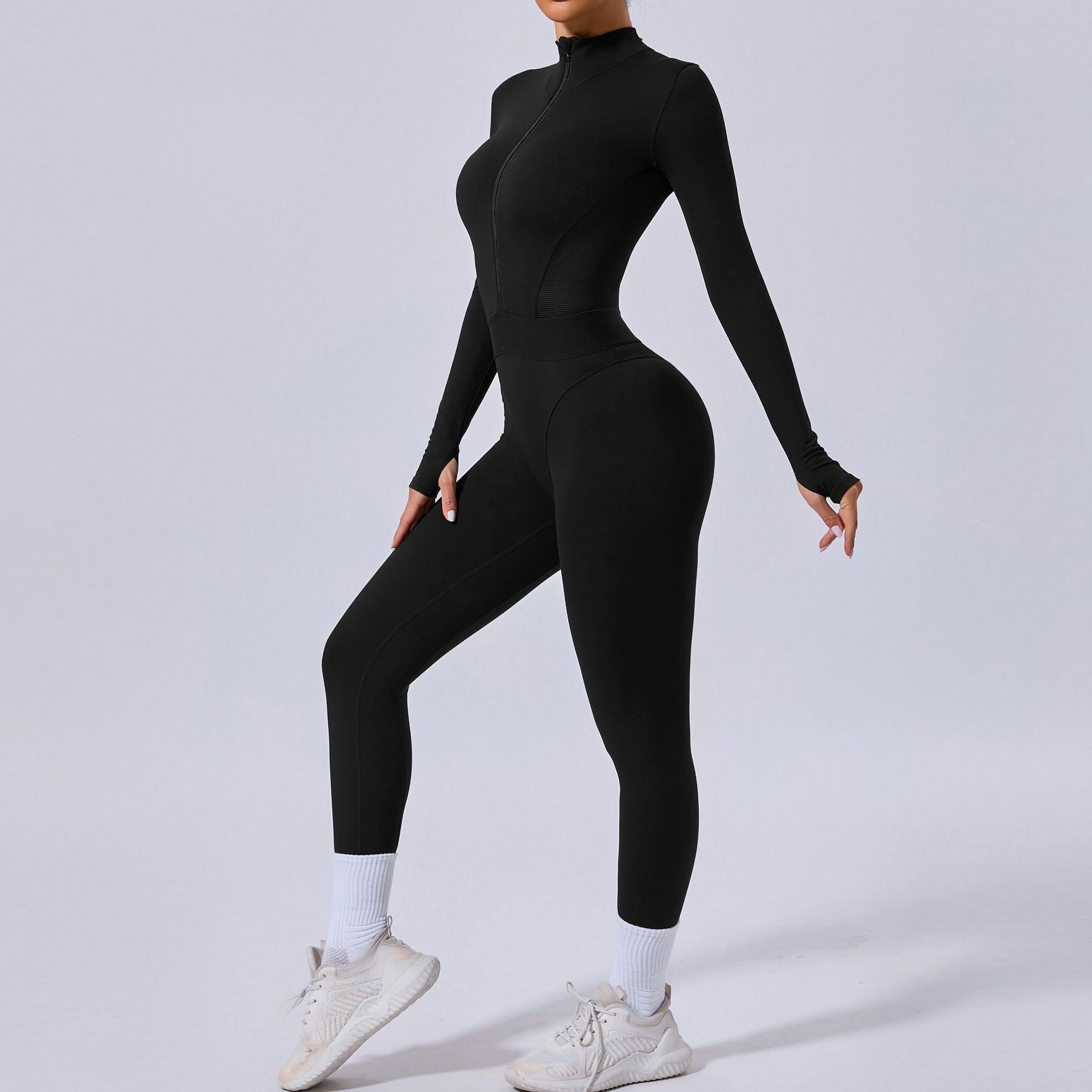 Mesh Stitching on Both Sides Yoga Jumpsuit Tight Elastic Waist Finger Hole Stitching Sports Fitness One Piece