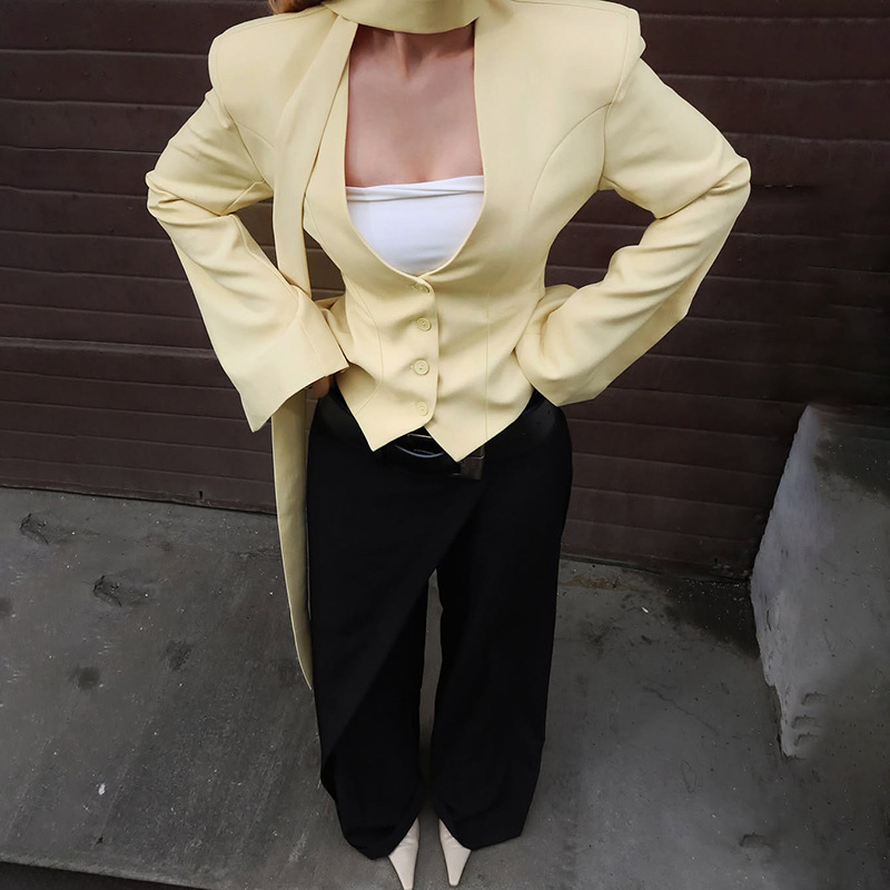 Women Clothing Autumn Elegant Cardigan Button Small Blazers Slim Solid Color Coat
