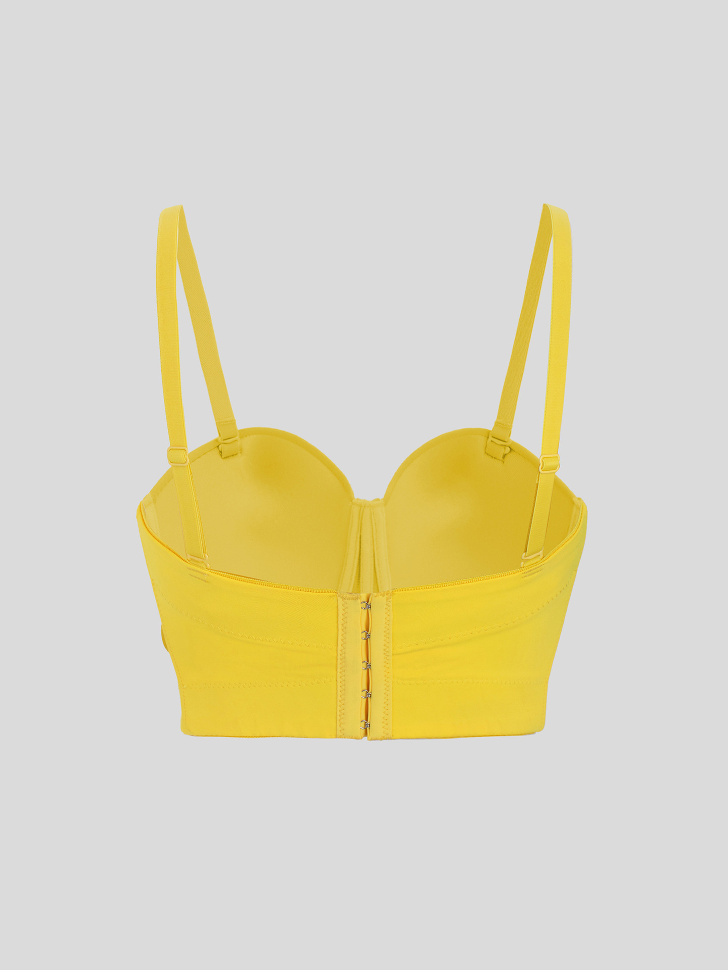 Yellow Floral Rhinestone Corset Top – Bandeau Sling Boned Bustier for Women